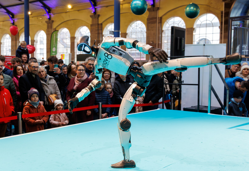 Spectacle robot chien devant le stand CAF ®Studio-odyssee.fr