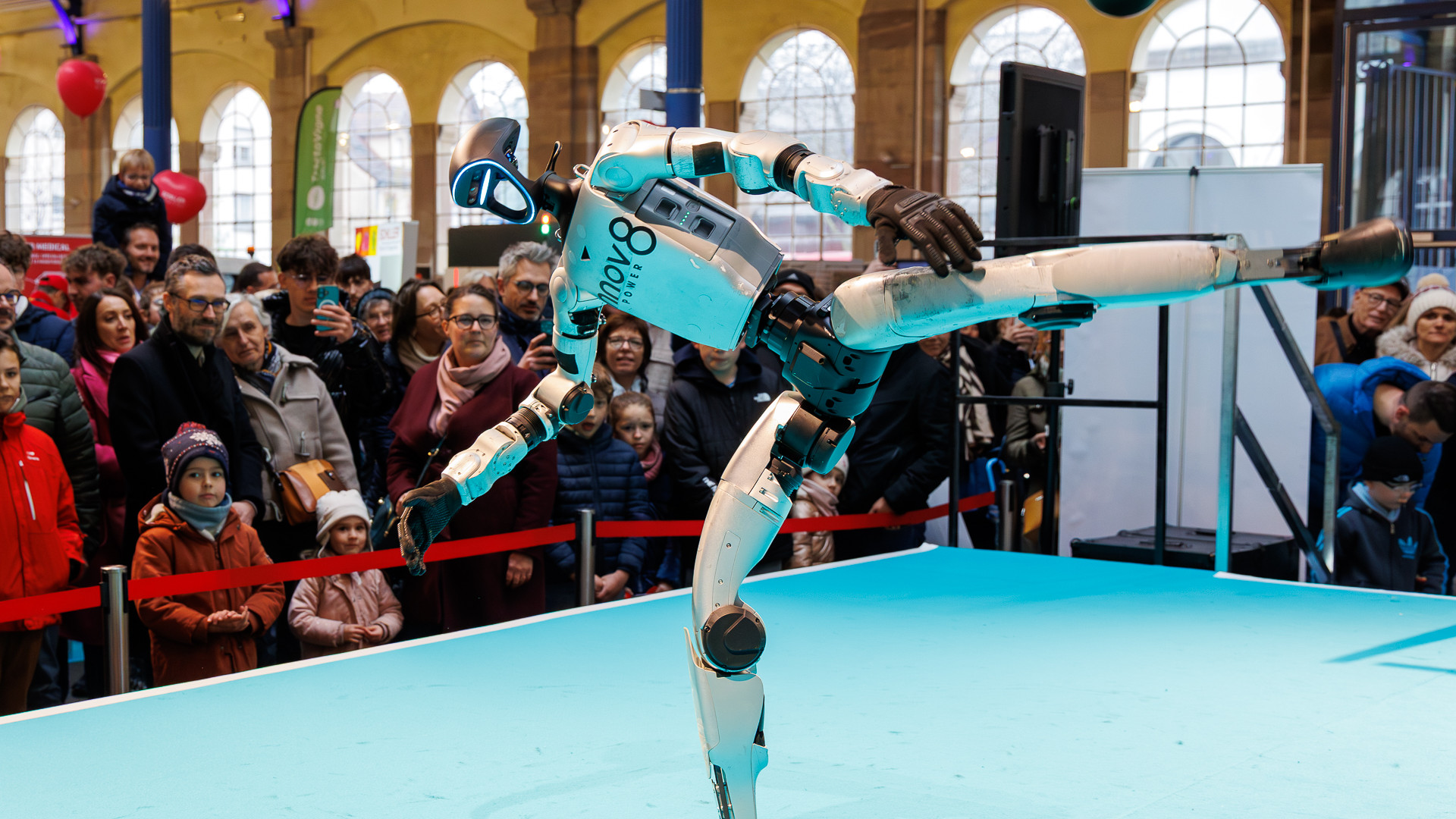 Spectacle robot chien devant le stand CAF ®Studio-odyssee.fr